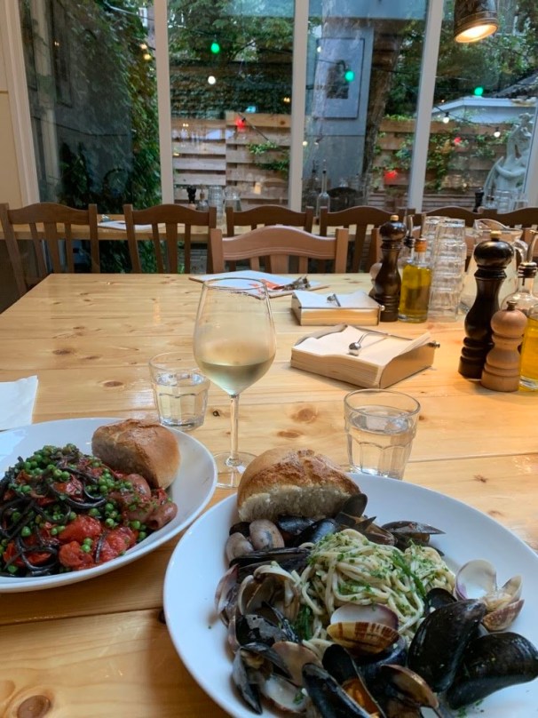 It’s pretty clear that my mom was under the weather on our last full day in Amsterdam. We took it easy and only went to the largest museum in Amsterdam: The Rijksmusem!? I booked a tour so that we could see one section of the museum comparing Rembrandt and Velazquez. This was my plot so that I wouldn’t become overwhelmed like my previous self in the Prado and the Lourve. We took a rainy walk back to De Pijp to have an early dinner at the Spaghetteria before tucking ourselves into bed.