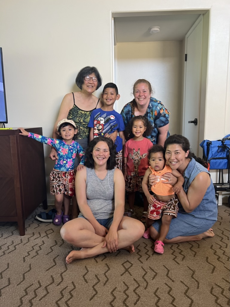 All of Miya’s planning and logistics all came to fruition as we checked into the Kona Coast resort just an hour apart from each other. I couldn’t believe we were finally in Hawaii! I remember feeling anxious because I wanted to do everything at once, and didn’t know where to start! I wanted to be with my sisters, to snorkel, to eat, to see my kids on the beach, to see my mom with her grandkids. The remedy to my wound up feelings was jumping in the pool with everyone on that first afternoon!