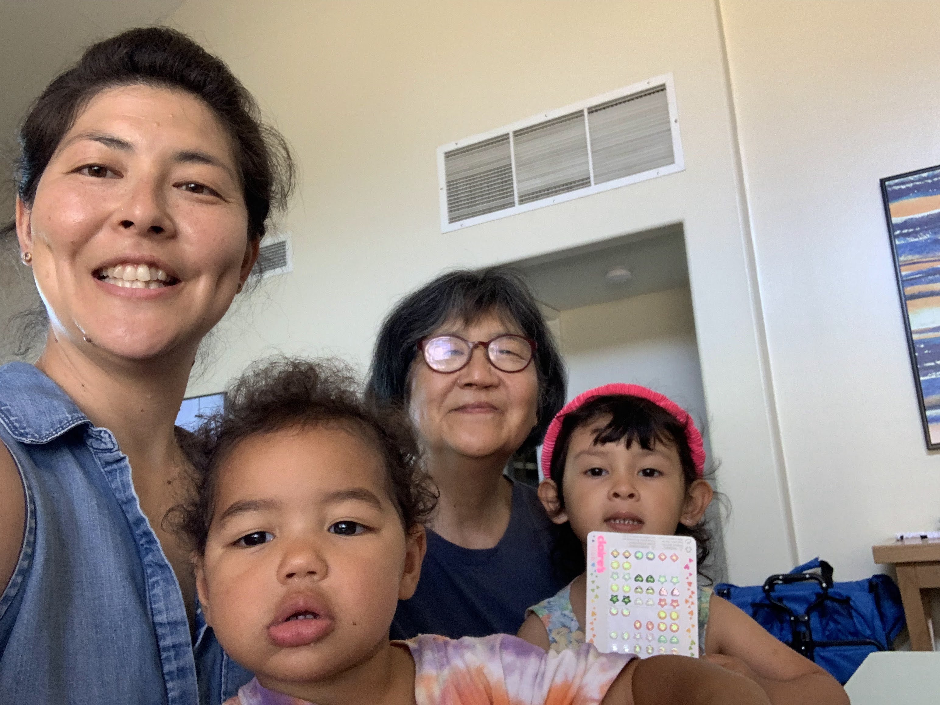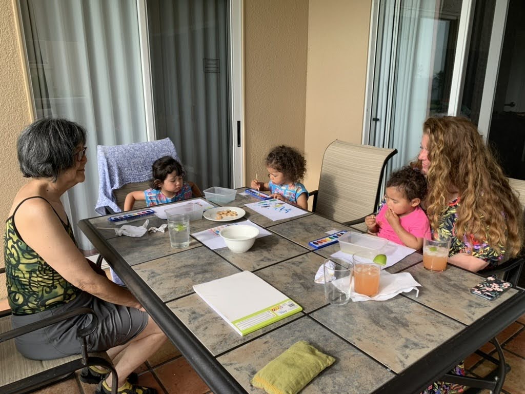 On Wednesday, Jamie and I rode to Kahalu’u Bay, locally known as ‘snorkel beach’, and floated for a couple hours amongst the growing coral and brightly colored fish. Jamie let me use her snorkel most of the time, and we’d come up for air, pointing out new creatures to each other. We spent time at the resort with Corey D and May, passing the time in the pool, and doing some watercolor painting. During nap time, Corey played a round of golf, and Bachan was able to find some Hawaiian fabric with Miya. We rendezvoused for family meal of aqua de papaya, shrimp tostadas and rice hosted by Christina. Yum!
