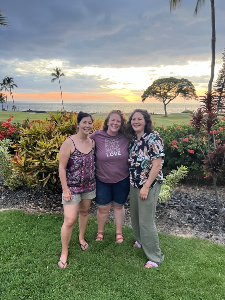 Thursday: Corey, Jamie, myself and the girls returned to the protected beach at Kamakahonu Kailua Pier, but it was a bit too warm to be out in the sun for very long. We did spy some black crabs blending into the lava rocks but left the beach in search of a yummy plate lunch at Broke Da Mouth Grindz. We found a keiki museum as well (children’s museum), a great spot to wait while lunch was being prepared. During nap time, Jamie and I snuck away to Ola Brewery, and tasted as much of the menu as we could from hard teas, ciders, and fun flavored beer. Highly recommend it if you’re in the area! Dinner in the evening was catch as catch can and family pictures at sunset. We missed our last night of volleyball because we were busy packing bags, sifting out sand, and wrapping souvenirs.