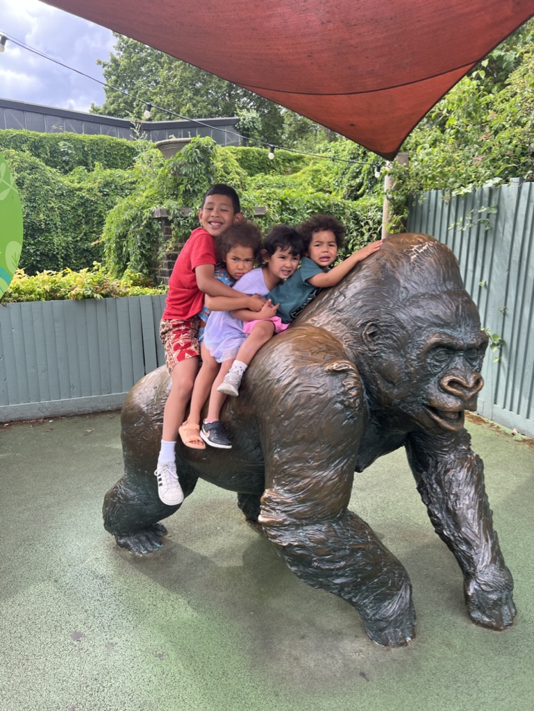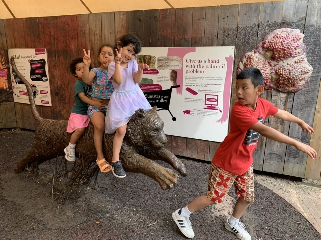Amongst all of the incredible memories being made, a highlight for me was taking the cousins to the zoo while Miya and Jose went out to a play at the Globe. We filled up the kids with ice cream, and spent the afternoon visiting the butterfly house, penguins, lions, and the tigers. Daisuke cracked me up in his posed picture ‘running’ from the tiger, and he was also taken with the sign warning that zoo guests look like a slab of steak to the tigers so please do not try to enter the enclosures.