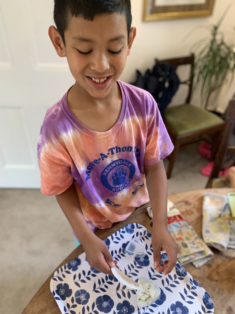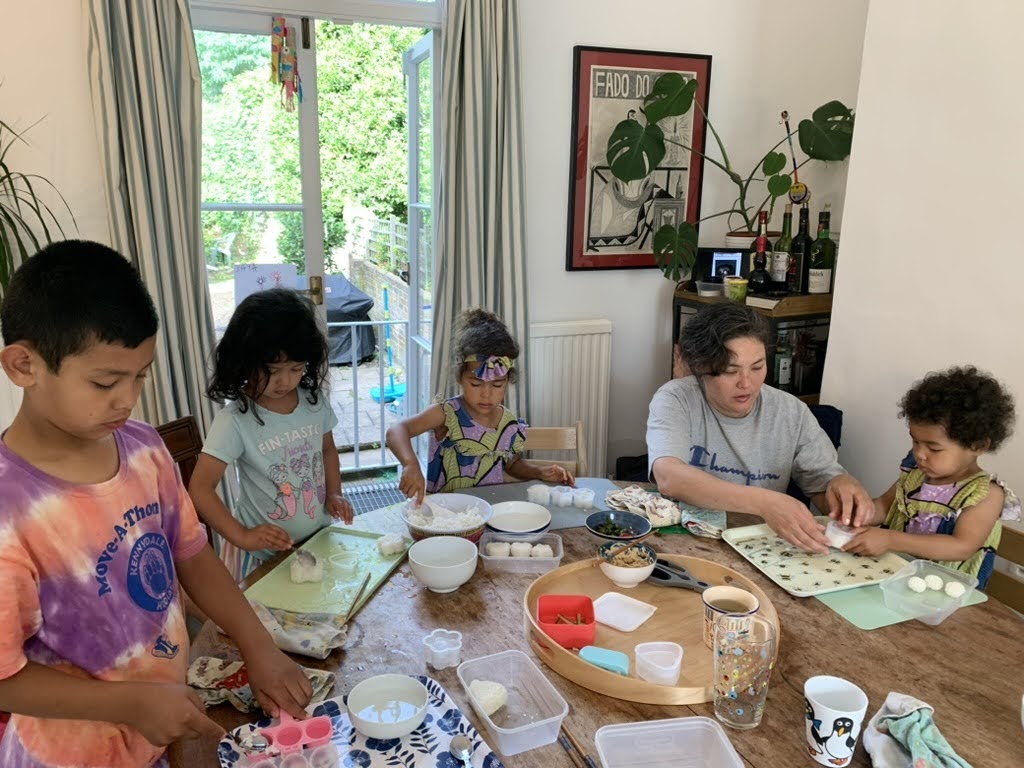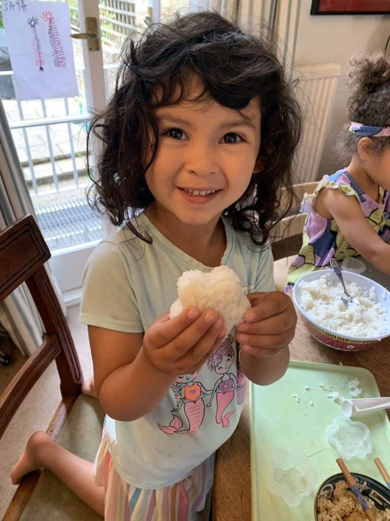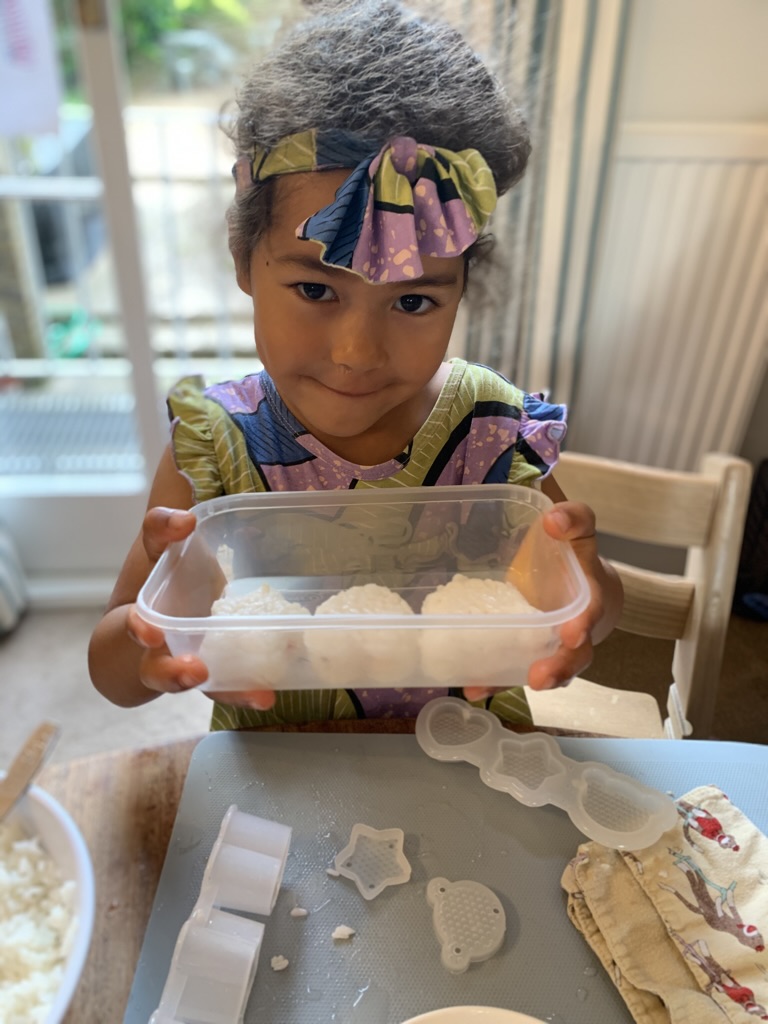 With my girls off school for the weekend, it felt like our house became a make/do creative space. There was crown making with sticker jewels. Miya and Jose set up pizza making in the backyard, and we tested some of Montes Deli’s red sauce, mozzarella cheese curds, and salami toppings- all delicious. Emiko decorated a cake for her dad’s birthday, and Miya led the charge again with our first experience making musubi. These moments helped me feel confident to do more hands-on cooking in the kitchen with my girls- something I’d been aspiring to, but hadn’t yet embraced.