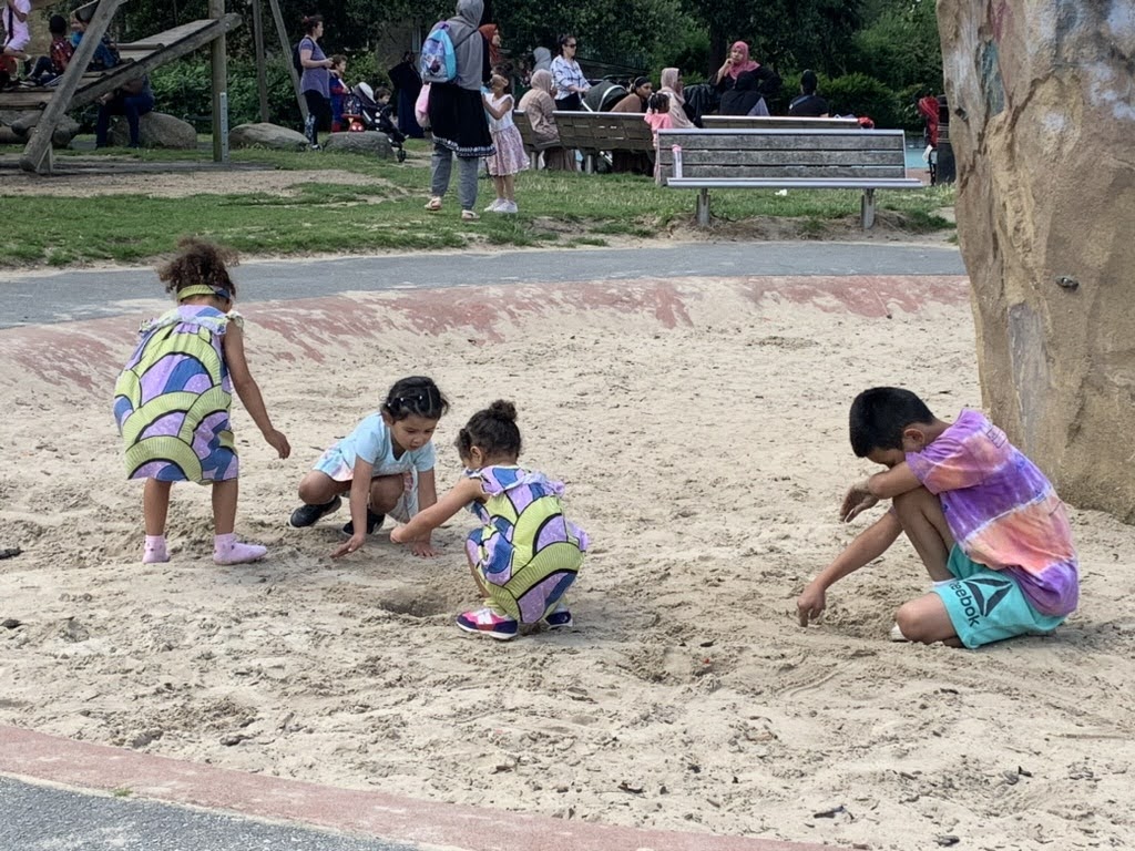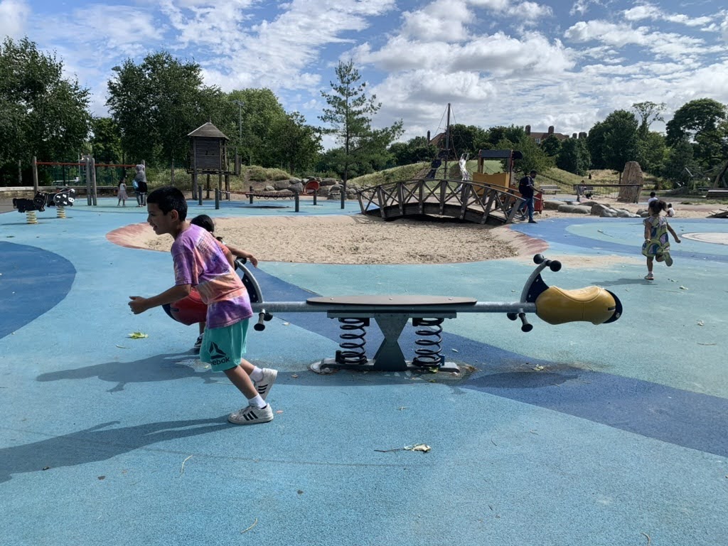 We spent time in the local playgrounds and the ziplines were a hit at both Highbury Fields and Clissold Park. We also did some bug sighting at Canonbury Square. We are thankful that our neighbors helped us assemble wheels and helmets that were the right size for everyone so we were a serious scooter brigade around the neighborhood.