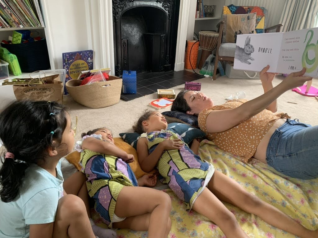 After a long flight, we gathered around the table and listened to stories of their travels. Tia and Tio brought gifts for everyone, and the girls were most excited about their scooter and bike bags that Miya handmade to affix to their vehicle of choice. We got hooked on Strega Nona, and they added some more books to our Frances collection. There was also a large cache of chocolate that Corey and I proceeded to sample daily after dinner. I couldn’t stop saying it, ‘They’re finally here!’