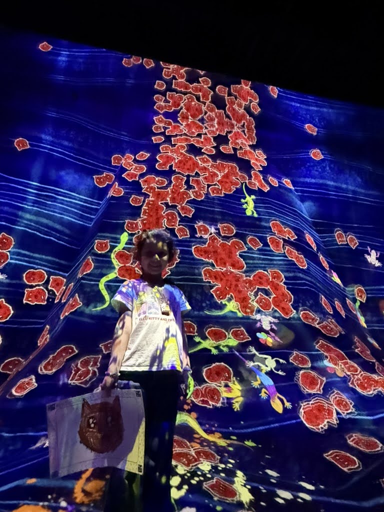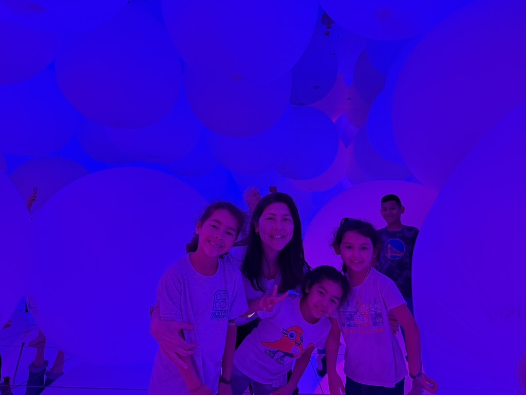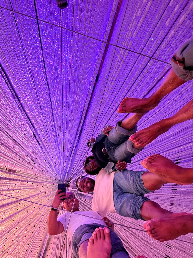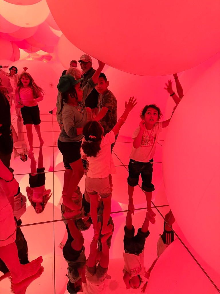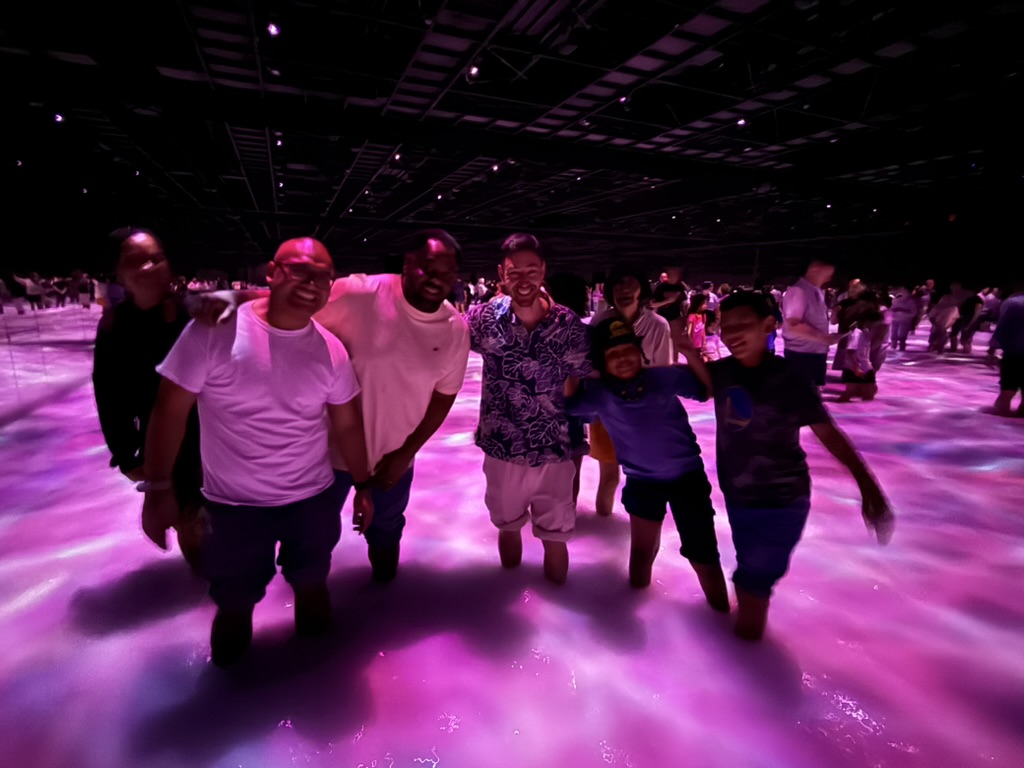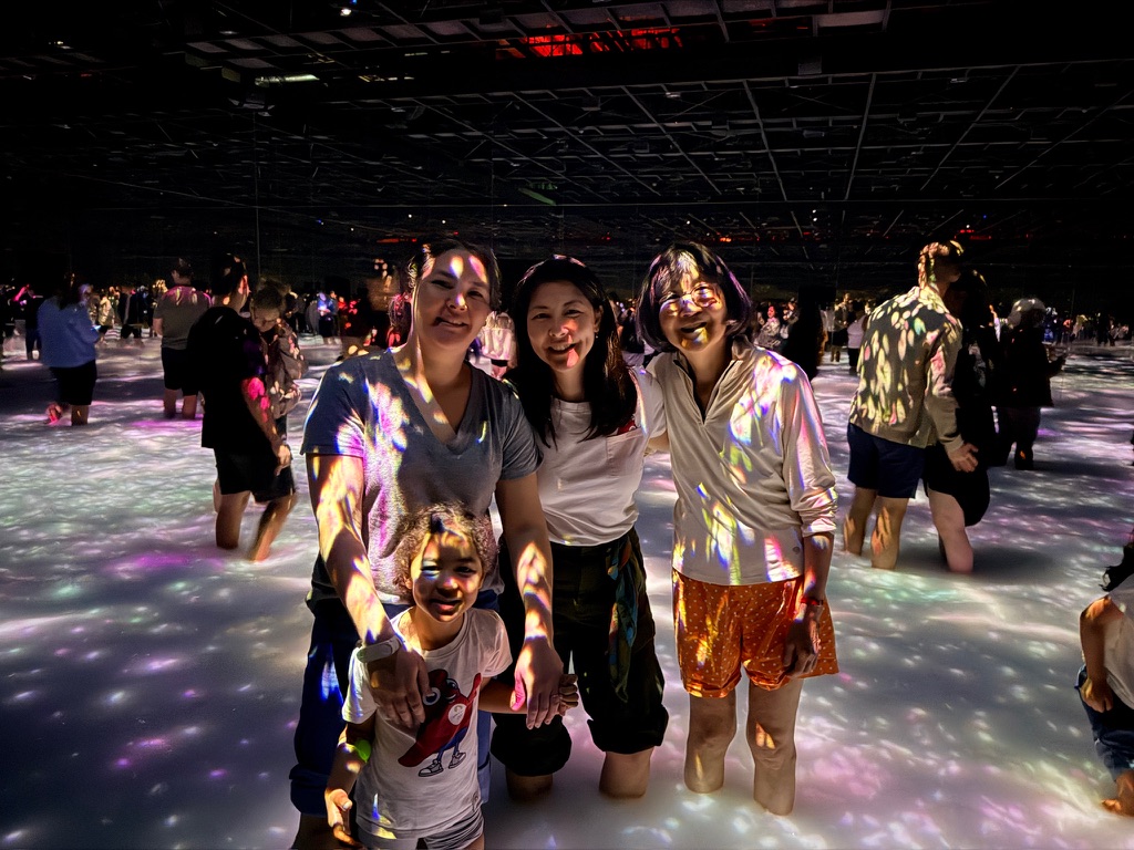 We jumped into the first full family day at Planet Team Labs. It’s an immersive, hyper stimulating art installation with three major sections. We started in the water section, took off our shoes, and waded through each section of the exhibition! The pictures do more justice than trying to explain the light shows, waterfalls, bubbles and maze-like transitions between each room.