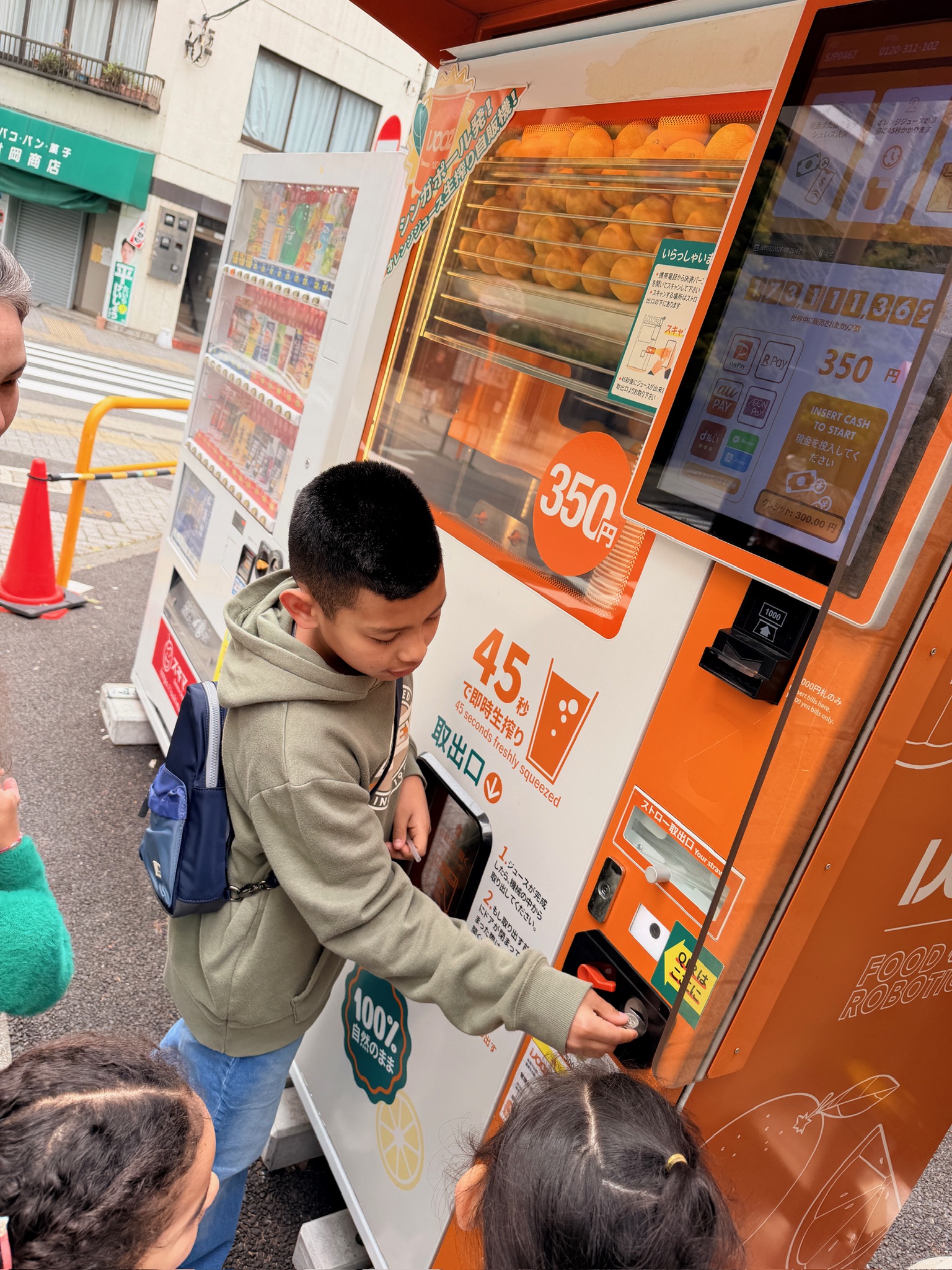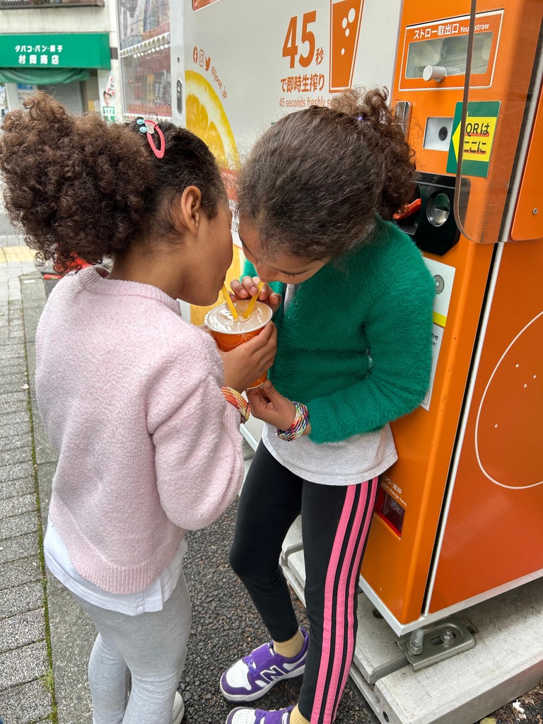 An early morning crew went walking for fresh orange juice in a vending machine. You’ll have to ask the kiddoes how it tasted as I was still in bed!