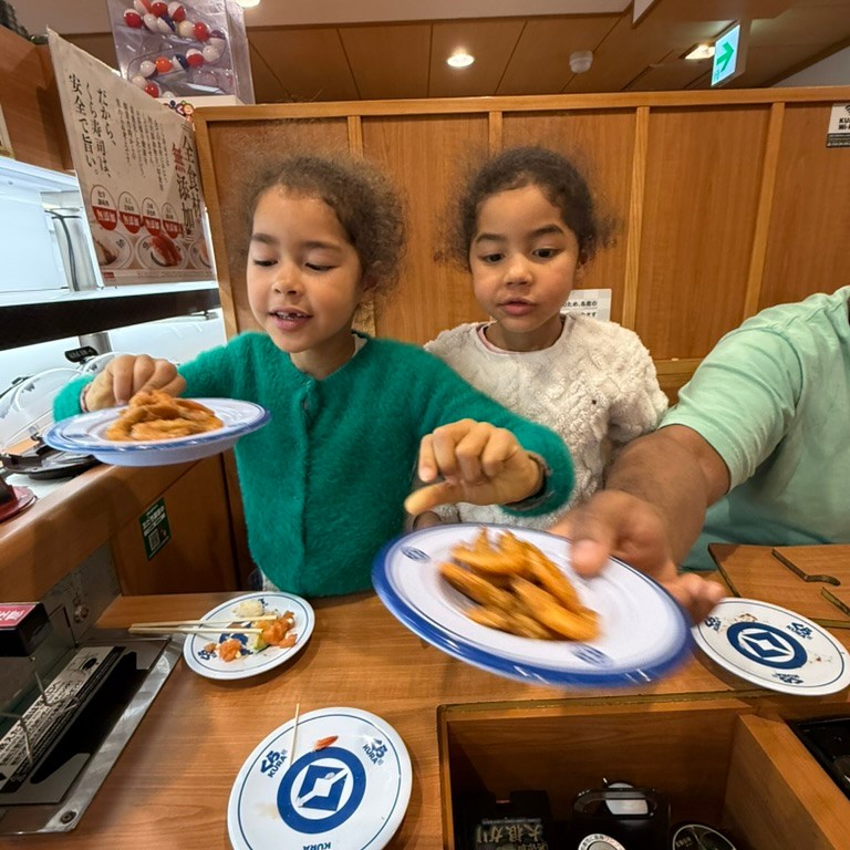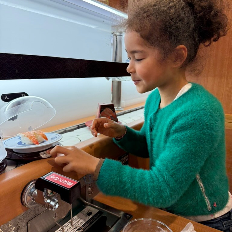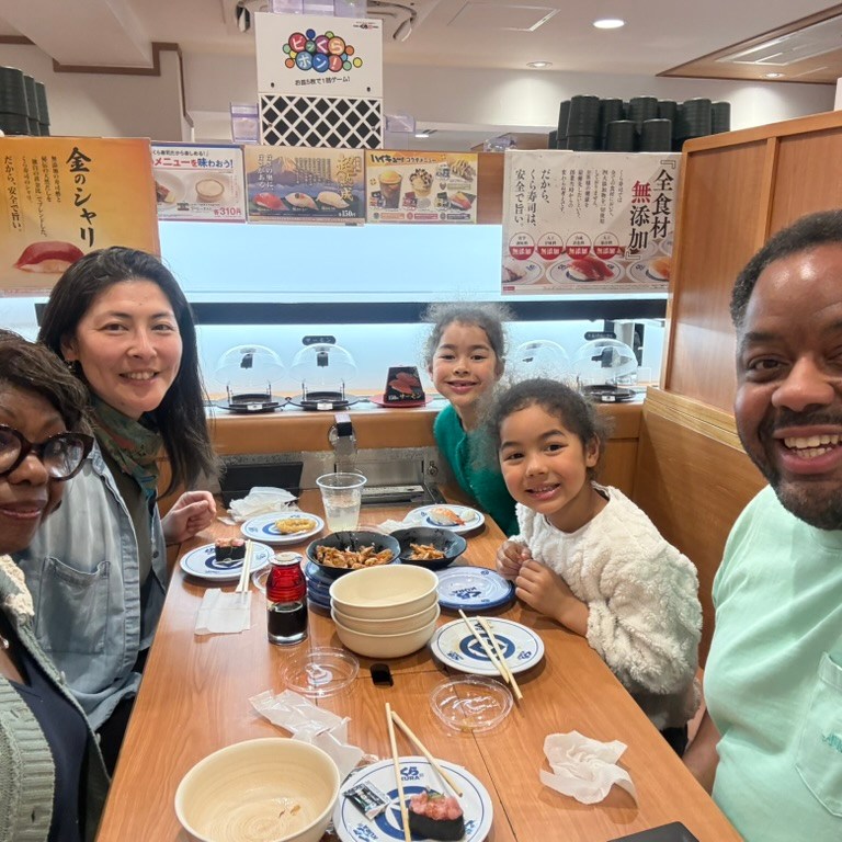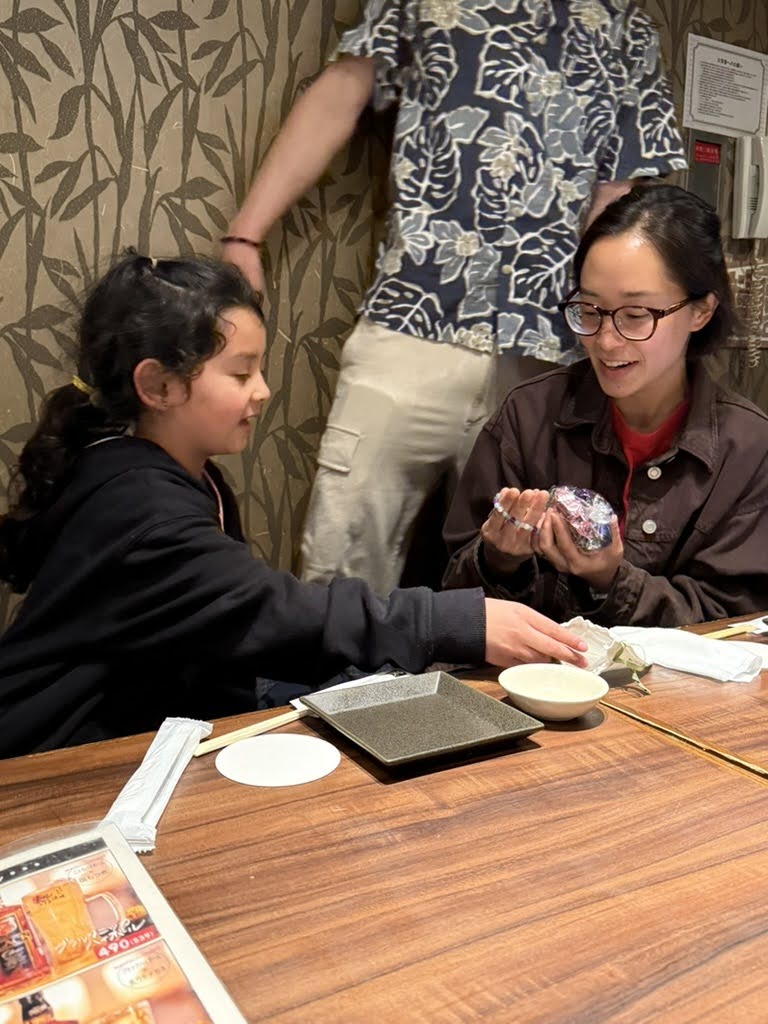 Dinner plans took us to Kura sushi in Shinjuku – affordable, family friendly, and something for everyone. Conveyor belt sushi paired with an ipad to order to our hearts’ desire was just the thing to start the night! I say start the night because during our meal, we received a text that cousins had arrived at the hotel!