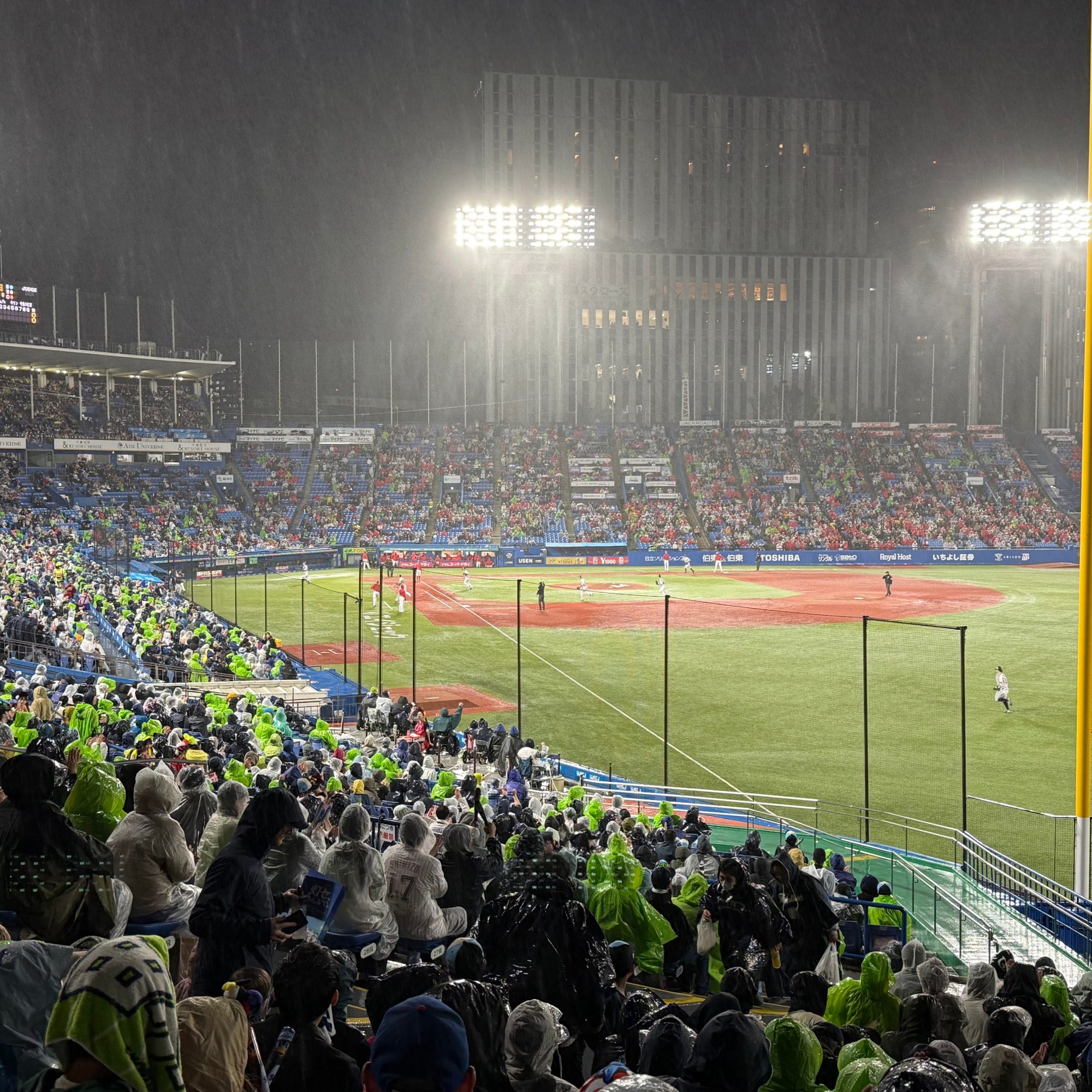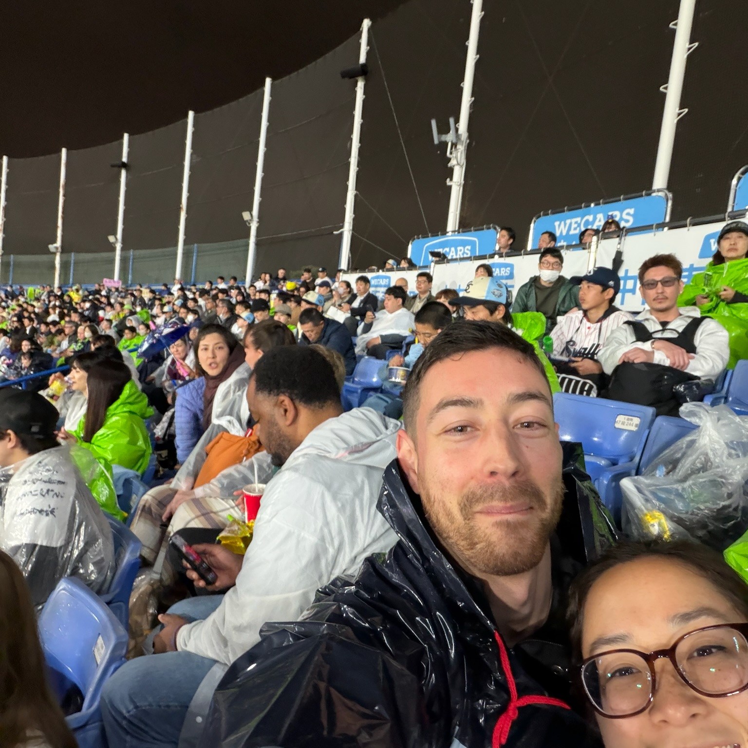 It was still wet when we were gearing up for the Yakult Swallows game vs the Hiroshima Carp. The game was only delayed but not cancelled so in our ‘gambatte’ spirit, our troop headed to the oldest stadium in the country!