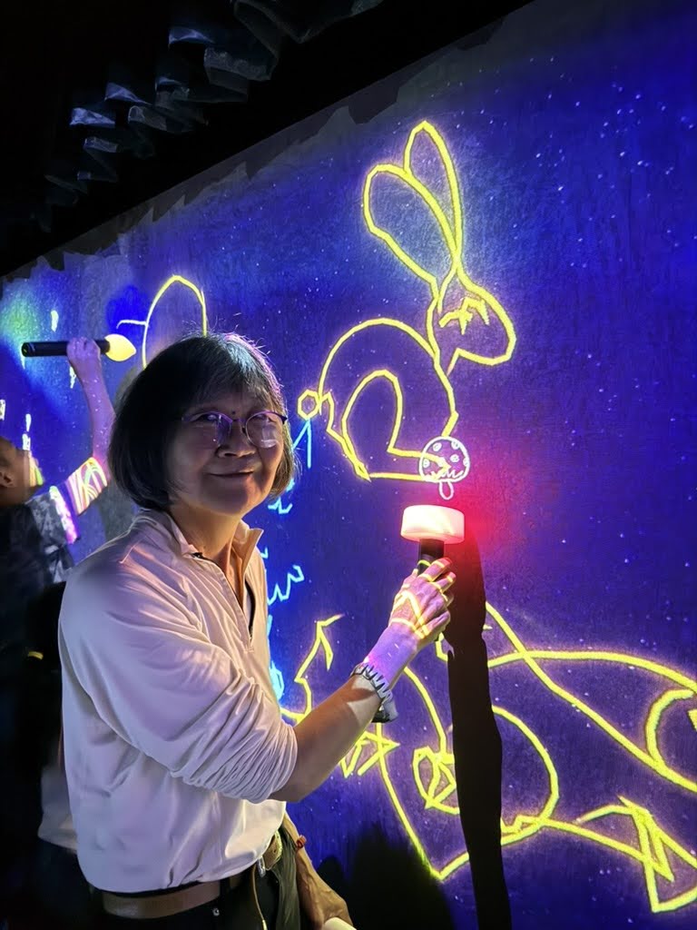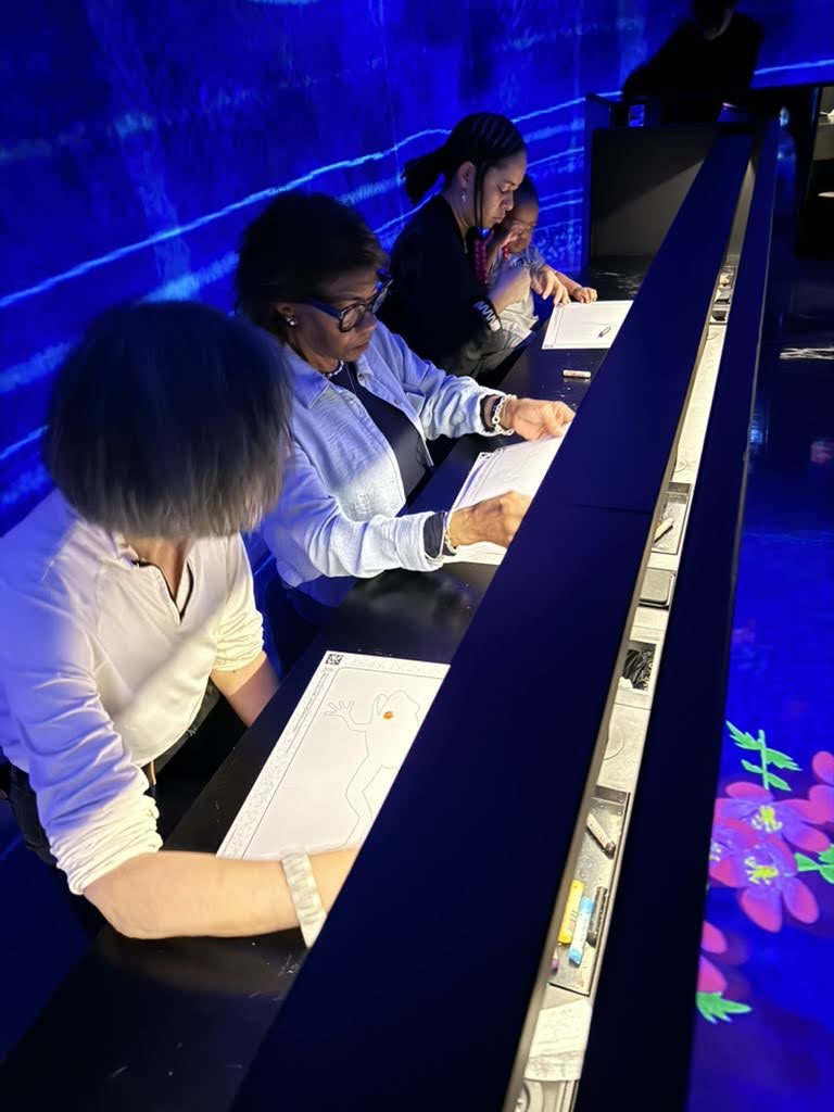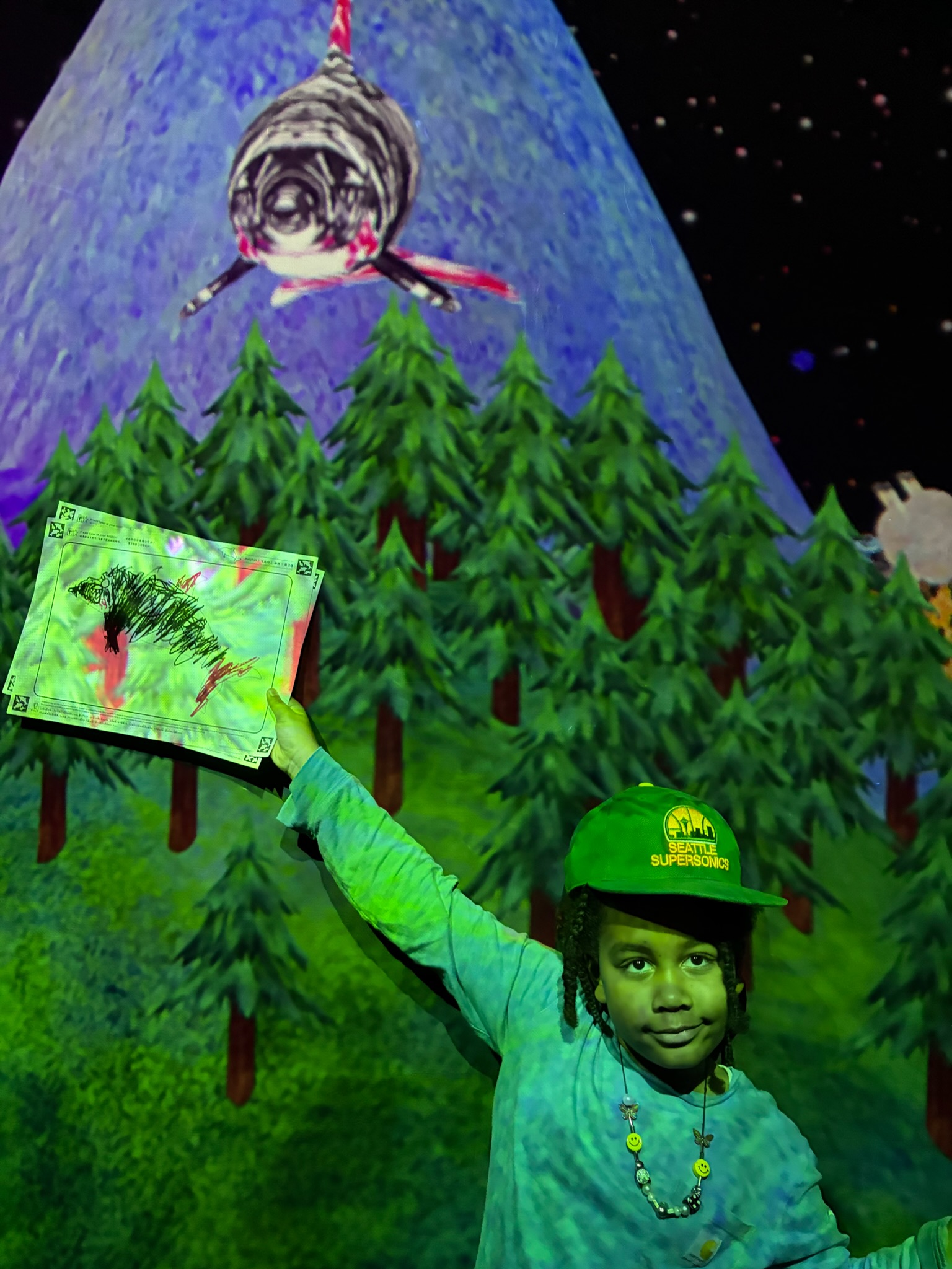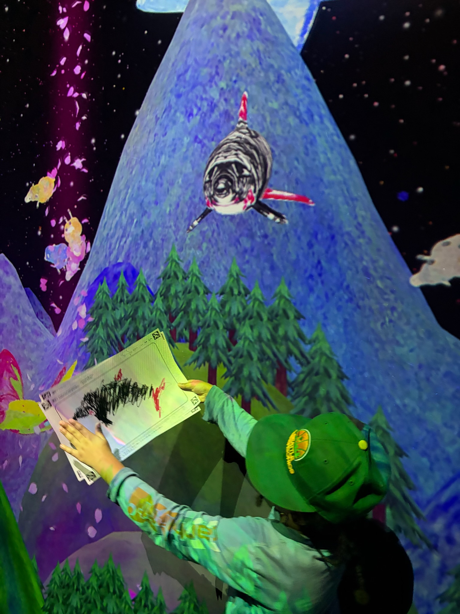 We chose the athletics forest section next. You could climb and jump but also sit and draw. Once you finished your drawing, we scanned our drawings and they were projected as live art work and animations on the walls and floor.